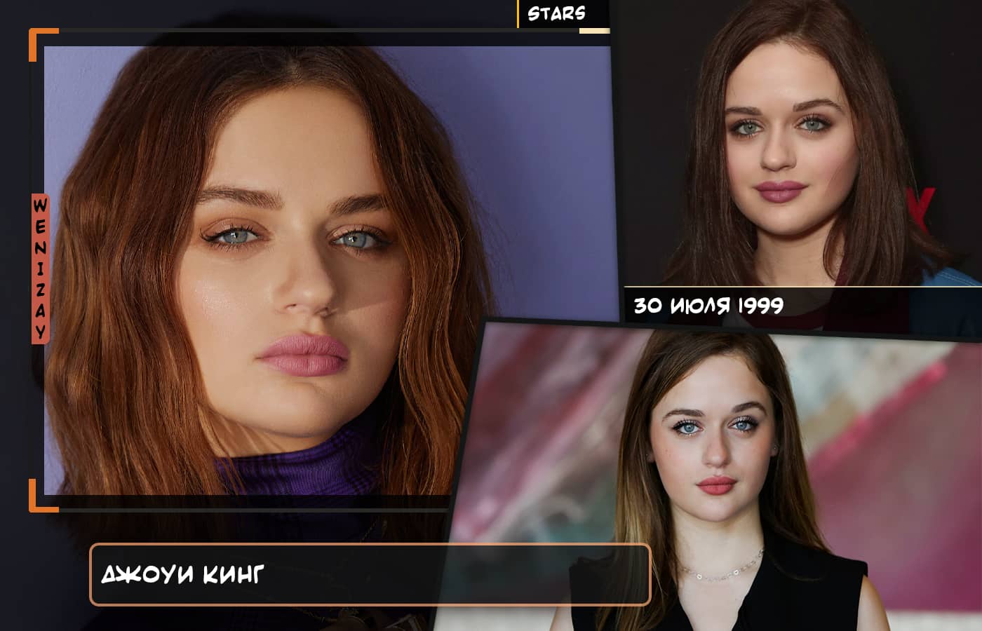 Джои (Кинг) - американская актриса, которая родилась 30 июля 1999 в городе «Лос-Анджелес». Дебют состоялся в 2006 году, она сыграла роль в фильме «Всё тип-топ, или Жизнь Зака и Коди».