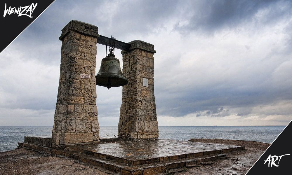 «Колокол отлит в Таганроге в 1778 году из турецких пушек, взятых в качестве трофея. На нём изображены покровители моряков — св. Николай и св. Фока. После Крымской войны был вывезен в Париж, где и находился до 1913 г. Во время непогоды использовался как сигнальный колокол.»