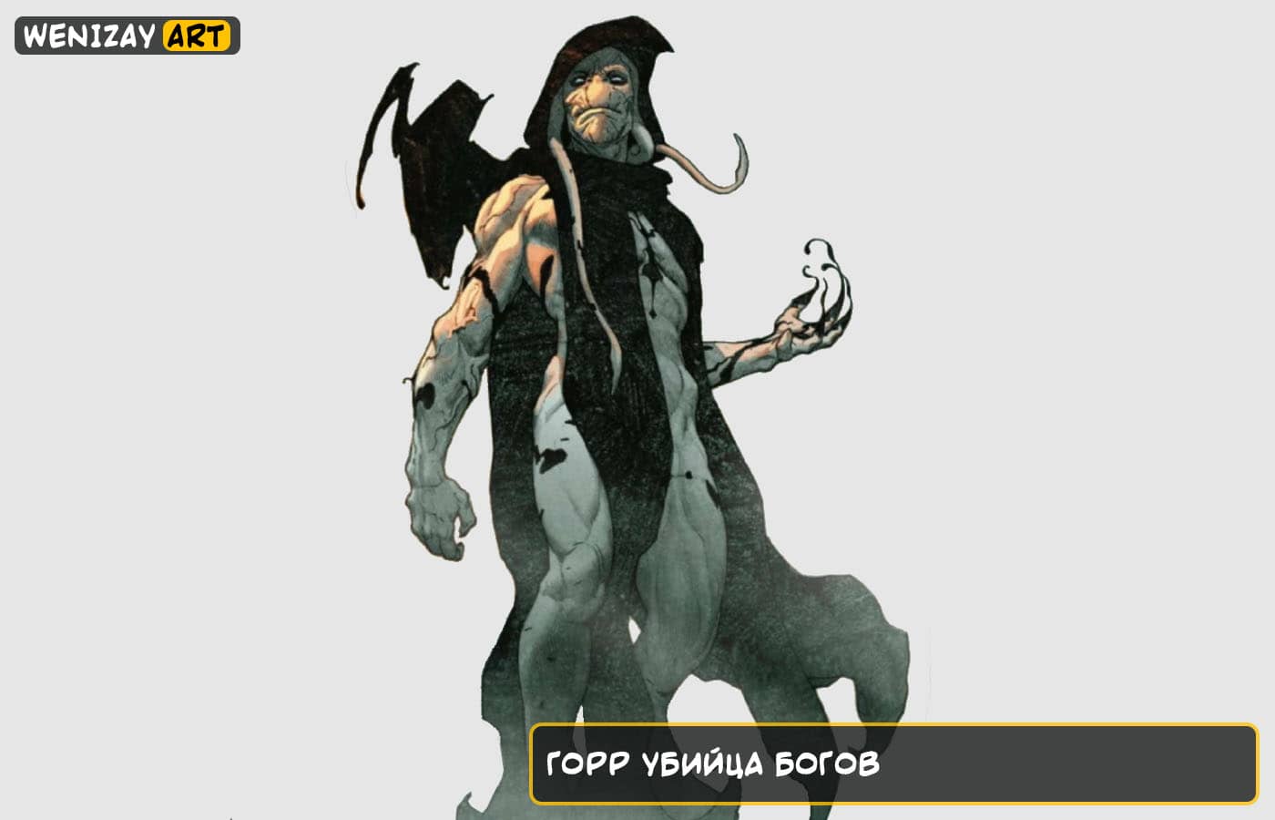 Горр вырос на неизвестной пустынной планете, где обычным делом были землетрясения, нехватка воды и нападения диких животных. Жители планеты слепо верили в богов, хотя боги никак не помогали им. Горр потерял веру в богов, когда его мать, жена и дети умерли. За это он был изгнан из своего племени. Когда Горр узнал, что боги всё же существуют, но не помогают нуждающимся, например, его семье, он поклялся убить всех богов. Затем Горр стал свидетелем боя Налла с Золотым богом; после этого Горр заполучил меч Налла, Некромеч Вечной Тьмы. В средневековой Исландии он находит молодого Тора. Ему почти удаётся убить бога грома, но Тору на помощь приходит отряд викингов. Горру отрубают руку и он сбегает. Он понимает, что ему нужна помощь в своём деле, поэтому он создаёт армию теневых берсерков и медленно и тихо убивает всё больше и больше богов. В современном мире Тор расследует пропажу богов. Это приводит к ещё одной битве Горра и Тора, но Горр телепортируется в будущее, где постаревший Тор оказывается последним выжившим асгардцем, защищающим Асгард от теневых берсерков. Туда же попадает молодой Тор. В этой версии будущего жена и дети Горра вроде бы воскресли. Горр собирается взорвать Бомбу богов. Сын Горра, на самом деле, оказывается существом, созданным из Некромеча. Он презирает отца за то, во что тот превратился, и поэтому придаёт Тору энергии поглотить взрыв бомбы. Тор использует два Мьёльнира, чтобы убить Горра.