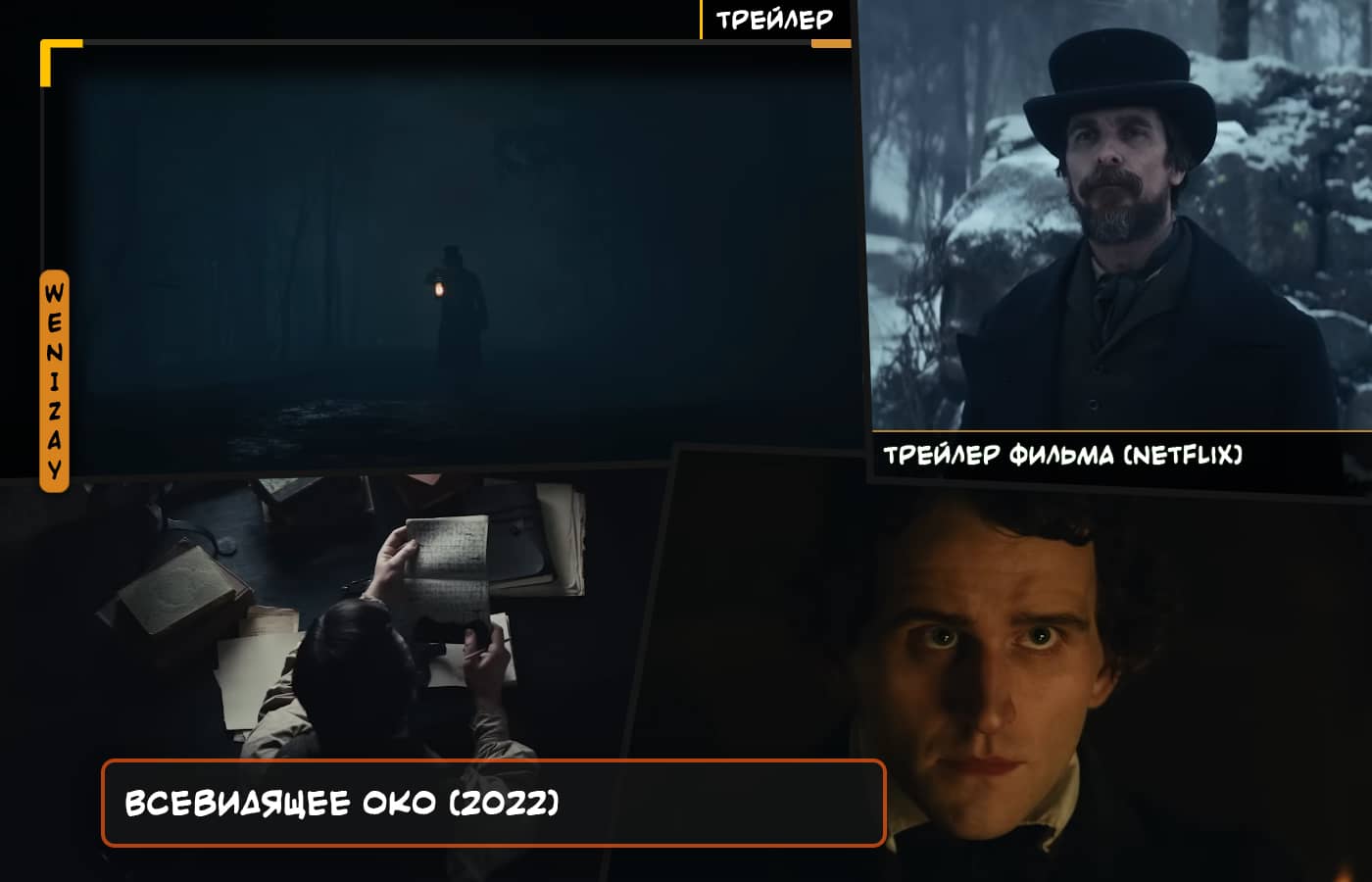Netflix выпустил официальный трейлер фильма «Всевидящее око» (The Pale Blue Eye). Фильм, премьера которого состоится на Netflix 6 января 2023 года, рассказывает о Кристиане Бэйле в роли детектива Лэндора, отставного сыщика, которого снова привлекает жестокое убийство в нью-йоркской военной академии Вест-Пойнт в 1830 году. Там он объединяется с молодым курсантом по имени Эдгар Аллан По (Гарри Меллинг), чтобы раскрыть это дело.Netflix выпустил полный официальный трейлер фильма «Всевидящее око». В трейлере показано взаимодействие между По и детективом Лэндором, а затем возвращение к началу, когда детектива вызывают в академию. Затем зрители узнают подробности преступления, которое расследует детектив: у курсанта, который, похоже, повесился, было вырезано сердце из груди в жуткой сцене, напоминающей одно из будущих произведений По.