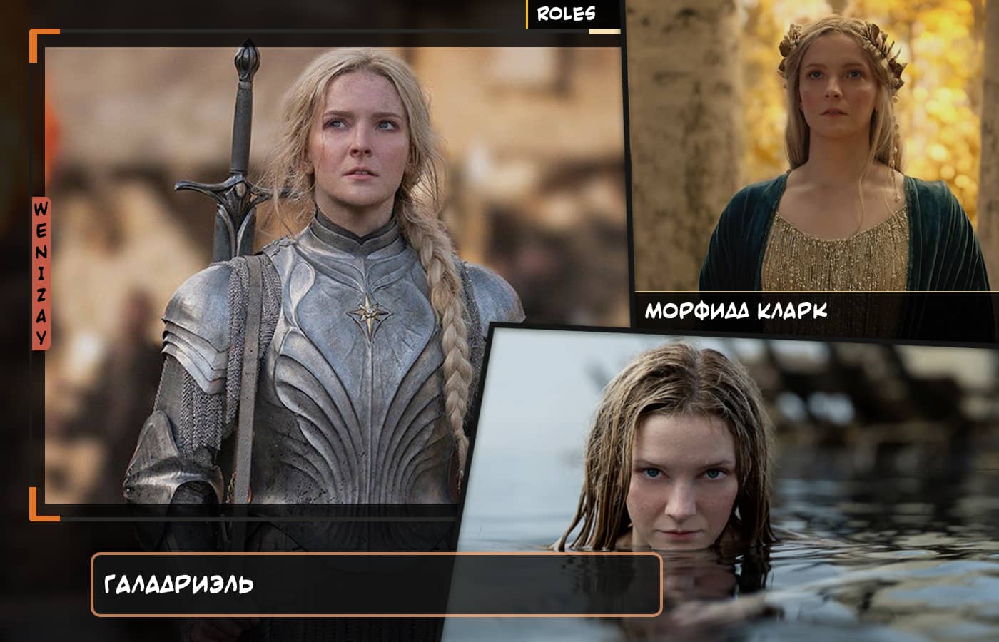 Роли и персонажи кино Галадриэль (персонаж) - в исполнении актрисы Морфидд Кларк, сериал «Властелин колец: Кольца власти»