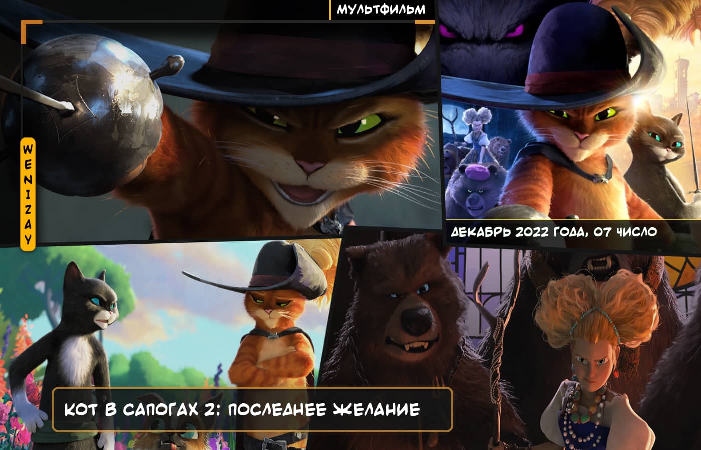 Информация про мультфильм Кот в сапогах 2: Последнее желание (2022) на WeniZAYCartoons - актеры, постер, дата выхода, описание и ваши отзывы.